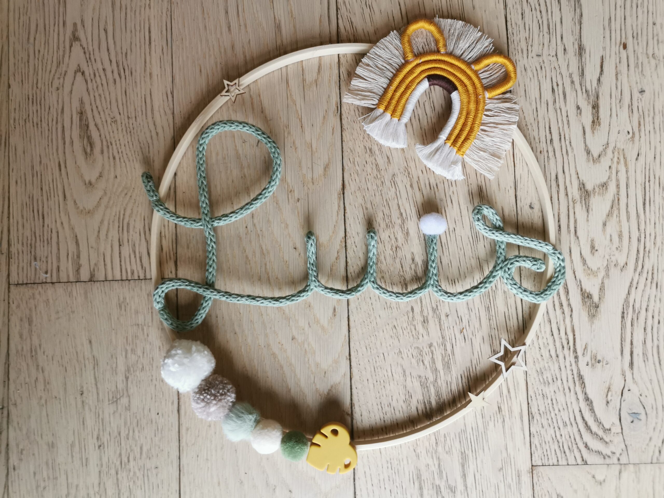 Soyez le premier à laisser votre avis sur “Prénom en tricotin avec animal en macramé”